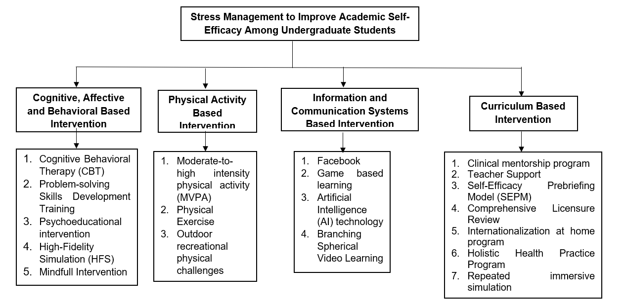 Conclusions : A comprehensive approach to stress management can significantly improve academic self-efficacy among undergraduate students. It is crucial for healthcare professionals, particularly nurses and educators, to integrate stress management techniques to improve academic self-efficacy among undergraduate students.