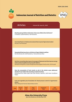 Jurnal Gizi dan Dietetik Indonesia (Indonesian Journal of Nutrition and Dietetics) abbreviated IJND (p-ISSN 2303-3045 and e-ISSN 2503-183X) is an open access and peer-reviewed scientific journal publishing updated research and non-research articles in the area of nutrition and dietetics by