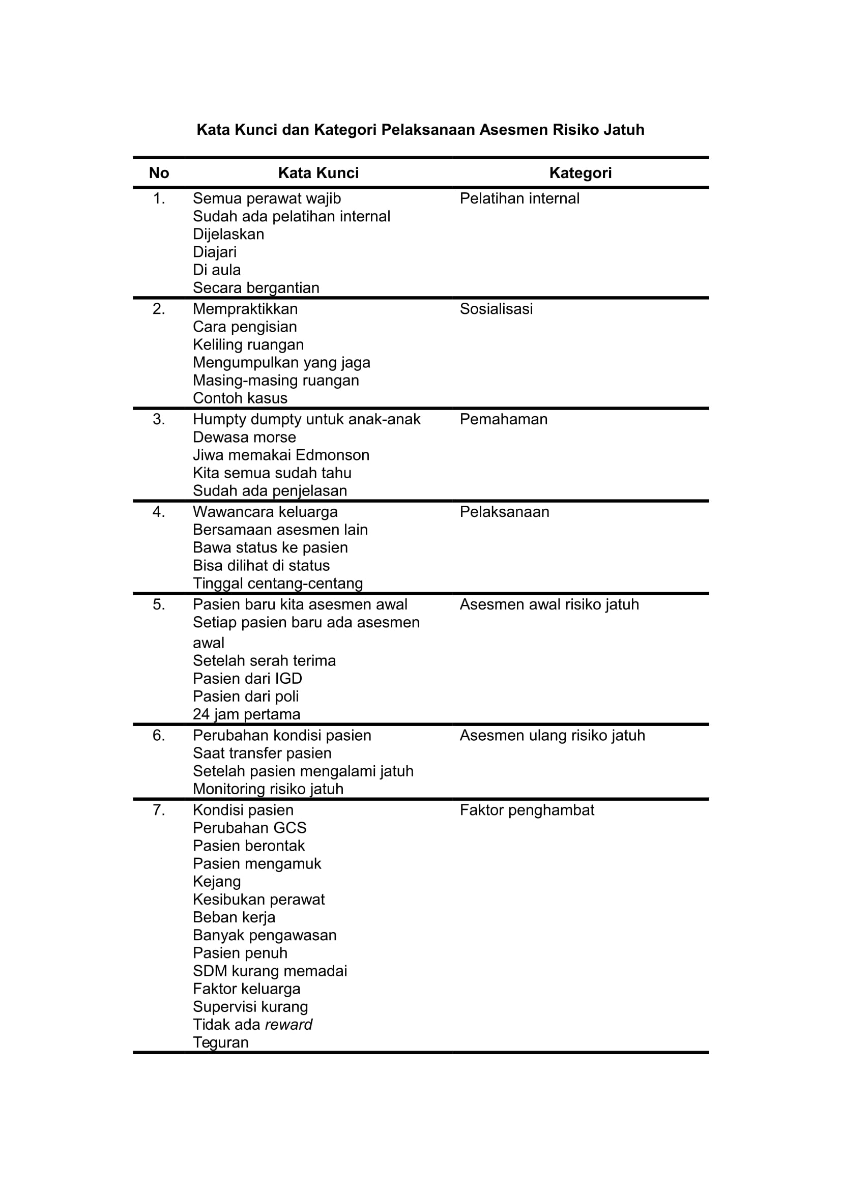 17. Setyarini E. Pelaksanaan Standar Prosedur Operasional: Identifikasi Resiko Pasien Jatuh dengan Menggunakan Skala Jatuh Morse di Rumah Sakit “A†Bandung. Artik J. 2010;